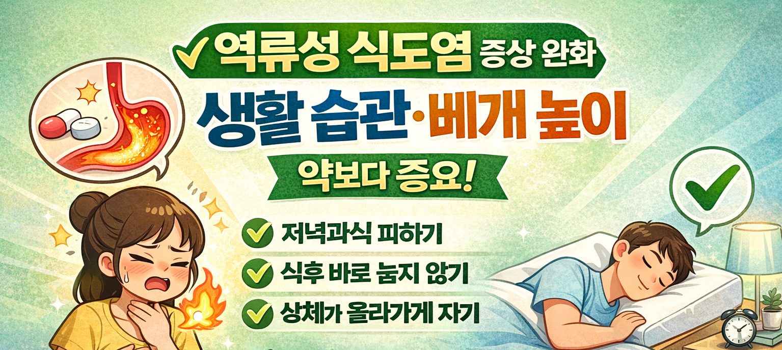 역류성 식도염 증상을 완화하는 핵심 생활 습관과 베개 높이에 대해 정리해 드릴게요.